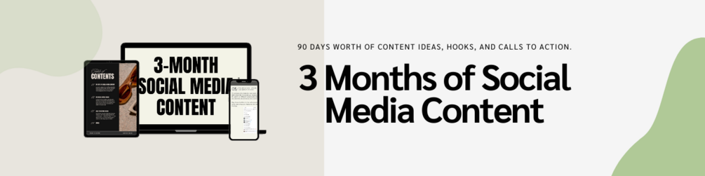 This done-for-you (DFY) 3 Months of Social Media Content Guide is perfect to help you get started on creating content.